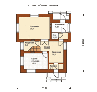 Компактный и сравнительно небольшой коттедж из кирпича имеет выразительную и стилизованную архитектуру фасадов. На первом этаже мы попадаем в просторную