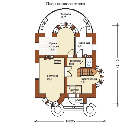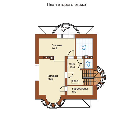 Двухэтажный дом-замок из кирпича на 150 кв.м с круглой башней