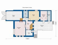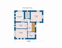 Гостиная с уютным камином является наибольшим помещением на первом этаже и расположена сразу же после входа в дом с левой стороны от холла. В рекреационный блок дома можно попасть, пройдя через помещение кухни или же войдя в него со стороны террасы. На втором этаже находится пять комнат, предназначенных для обустройства спален, мастерской и комнаты для гостей.