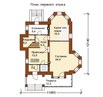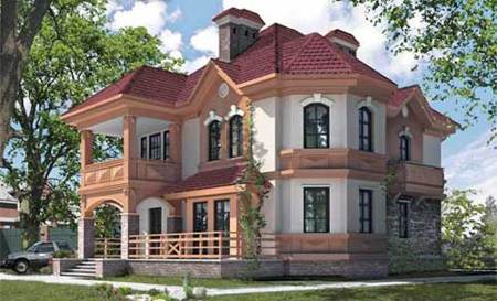 Проект загородного двухэтажного коттеджа из кирпича предполагает круглогодичное постоянное проживание. Основной отличительной чертой фасадов данного коттеджа является облицовка значительных площадей фасадов здания деревом, что придает его внешнему облику органичность восприятия. Коттедж совмещает в себе прекрасно продуманную планировку и законченный внешний облик. Представленный кирпичный дом рассчитан на возведение на ровном участке с высоким уровнем грунтовых вод.