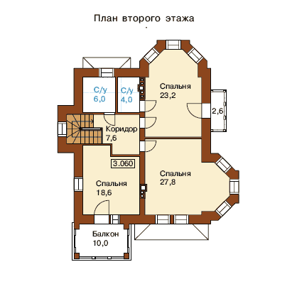 Проект дома-замка из кирпича в 2 этажа на 189 кв.м с балконом над крыльцом