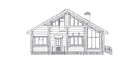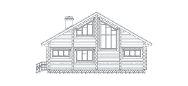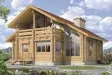 Небольшой по общей площади, но достаточно вместительный коттедж из рубленного бревна выглядит вполне современно и прекрасно подойдет для постоянного проживания современной семьи. Кроме того в данном особняке с комфортом может разместиться большая компания и для сезонного отдыха. Стоимость постройки этого особняка заметно снижается за счет простой двускатной крыши и отсутствия подвального этажа. Дизайн коттеджа создан с большой долей фантазии, о чем говорит наличие больших скошенных под крышей окон на первом и на втором этаже, пропускающих больше дневного света, чем стандартные современные окна. Так же интерес представляет просторный крытый балкон второго этажа, расположенный прямо над парадным входом, и служащий ему своеобразной крышей.