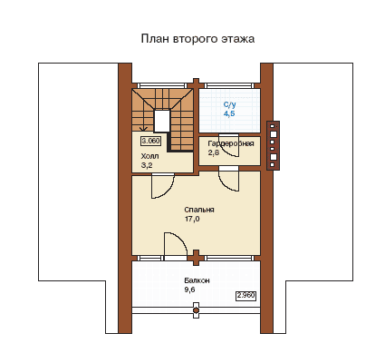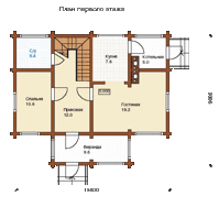 Проект двухэтажного коттеджа из рубленого бревна 9*11 кв. м