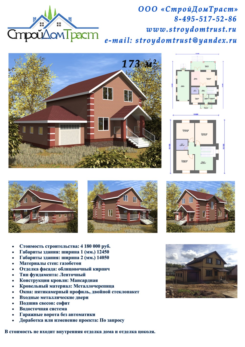 Поселок предназначается под ИЖС, а это значит, что в нем можно будет оформить регистрацию (прописку) и проживать постоянно. Застройщиком территорий (подрядчиком) выступает компания «СтройДомТраст». Возводятся дома из кирпича, керамических блоков, газобетона. Предлагаются сотни типовых проектов на выбор – одноэтажные, двухэтажные дома. Возможно возведение дома по индивидуально разработанным проектам.