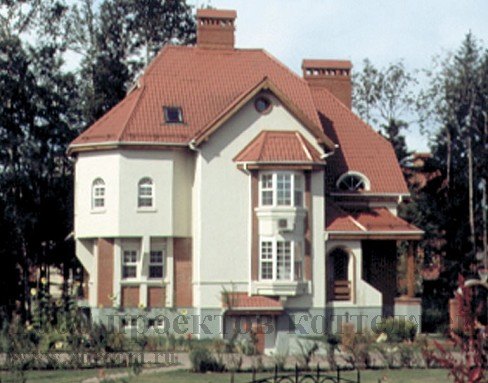 Приятный стиль этого загородного коттеджа напоминает черты замковой архитектуры и даже ар-деко. Этот проект подойдет любителям своеобразной экзотики, предпочитающих стилистику XIX века...