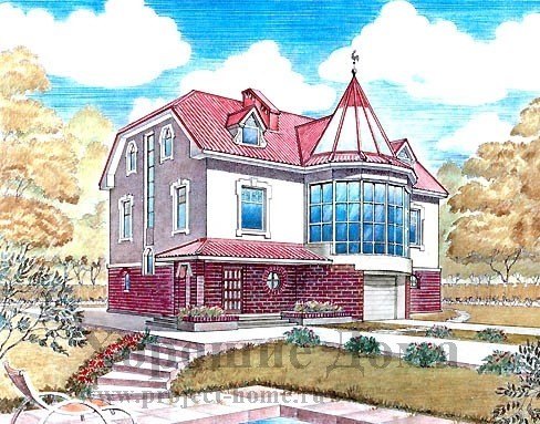 Нестандартный проект кирпичного дома-усадьбы подойдет для воплощения на участках с переменным уровнем рельефа, что, впрочем, не мешает использовать полноценный цокольный этаж, предусмотренный в...