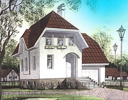 Традиционный загородный особняк с достаточно высоким цокольным этажом выделяется нестандартным планировочным решением, по которому центральная часть первого уровня между двумя несущими стенами...