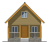 Внешне этот небольшой коттедж лаконичен и аккуратен. Комбинируя разные отделочные материалы на фасаде (например, брус и облицовочный камень) можно придать ему оригинальный и более современный вид.