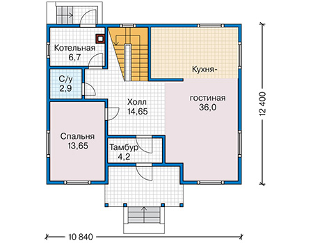 Габариты: 10,84 x 12,4 м
