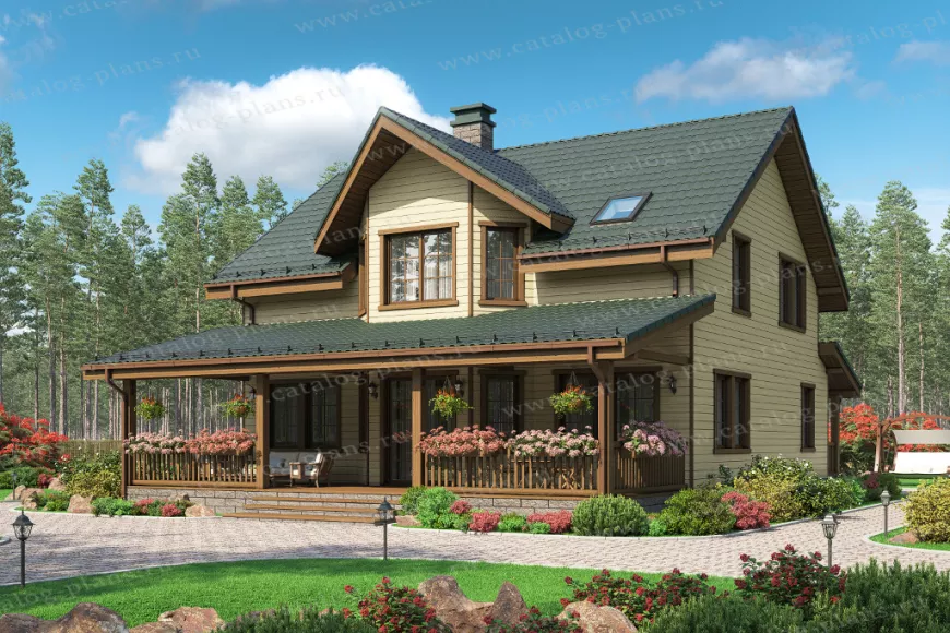 Красивый дом-особняк с большой террасой под крышей и фигурным эркером, верхней частью выступающим над основной крышей, станет уютным родовым гнездом для дружной семьи. 4 спальни располагаются на разных уровнях. Это позволяет пожилым супругам или молодой паре обосноваться отдельно от основной семьи. Людям в возрасте проживать на нижнем ярусе более удобно: подъём по лестнице не всегда доставляет удовольствие в зрелом возрасте.
