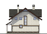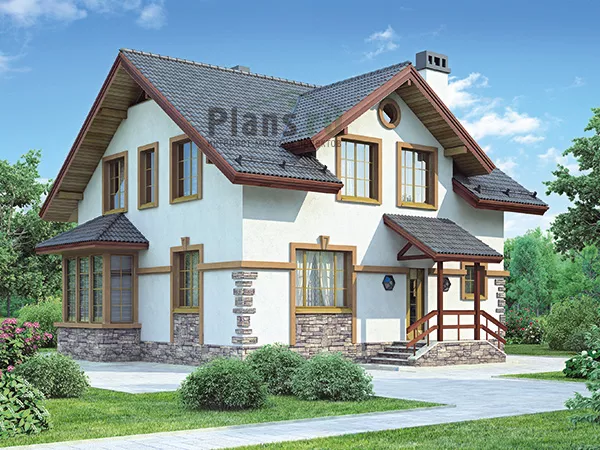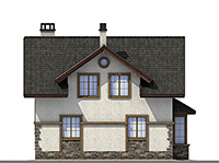 Роскошный особняк на 154 квадратных метра имеет мансарду и прямоугольный застеклённый эркер на первом этаже. Окна мансарды выполнены в виде люкарен под двускатными крышами, с коньками, перпендикулярными основному.