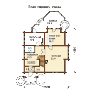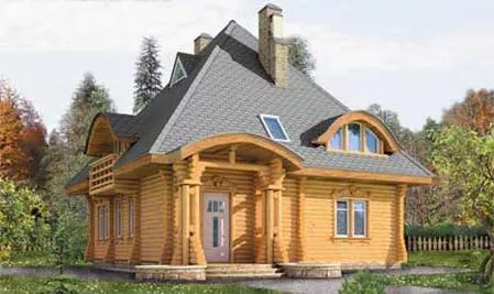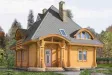 Проект особняка из оцилиндрованного бревна с оригинальным дизайном привлечет внимание каждого прохожего. Необычное оформление экстерьера дома напоминает фрагменты сказок и оставляет положительное впечатление. Необычной формы терраса с обратной стороны дома имеет площадь 22,4 кв. м. и станет излюбленным местом для отдыха всей семьи. Внутренняя планировка обеспечивает комфортабельное пребывание в особняке в течение всего года. Семья из 3-4 человек с комфортом разместится в этом коттедже на постоянной основе. Проект подходит для воплощения на земельных участках с высоким уровнем грунтовых вод.