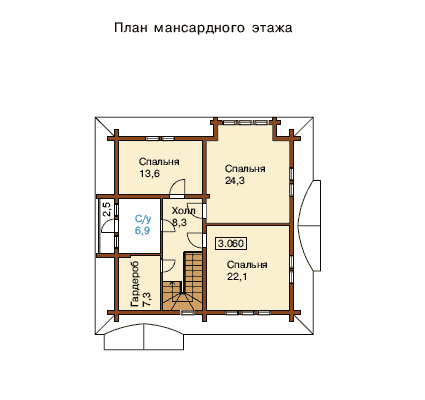 Проект дома из оцилинрованного бревна с мансардой
