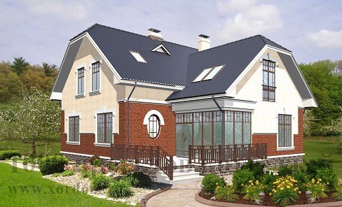 Загородный дом из кирпича создан с учетом традиционной русской архитектуры...