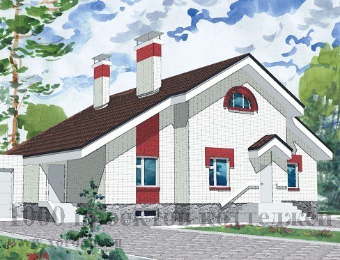 Светлый уютный коттедж в традициях стиля кантри с лаконичным дизайном фасада, светлым эркером и асимметричной двухскатной крышей, под которой находится также и гараж, выполненный в виде пристройки к...