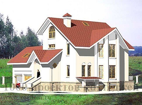 Классический загородный особняк с выразительным порталом на входе, ажурными коваными перилами в оформлении крыльца и балкона, эффектным фронтоном...