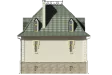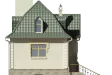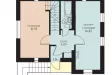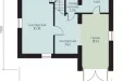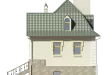 Достаточно небольшой, но вполне вместительный загородный коттедж с необычным дизайном экстерьера предлагает общую площадь всего в 68,36 кв. м. Стильная крыша гармонично сочетается с оригинальными мансардными окнами придают этому особняку особое изящество и напоминает сказочный домик. Интересно, что при этом планировка внутренних помещений нисколько не страдает, а даже выигрывает от такого необычного дизайна. Помещения довольно просторные для коттеджа таких размеров. Кухня-столовая занимает территорию в 16,83 кв. м. и расположена через холл от гостиной. В мансарде точно таким же образом размещены две спальни размером 17,6 кв. м. и 16,3 кв. м. Между ними находится холл и общий санузел.