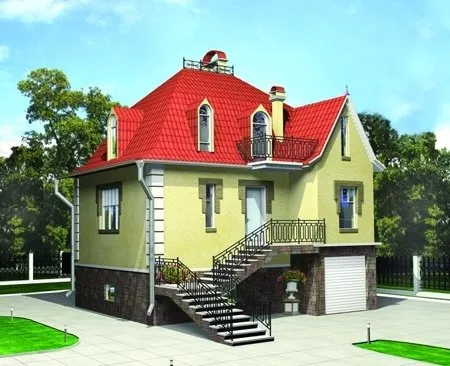 Загородный дом с мансардой 7 x 8 из пенобетона, газобетона